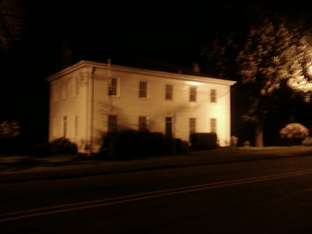 Parked the car by the McLoughlin House (Dr. John McLoughlin's house? You know, Hudson Bay Company? British? Was hated by the British because he helped American Emigrants to the area with supplies and medicine? That guy? Yes, that guy!) Here's a blurry picture of his house taken at night.