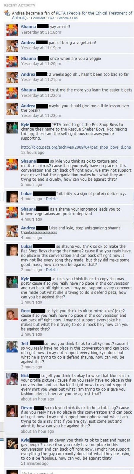 This is part of the reason I purged my facebook friends list over stuff like this, but this is funny......